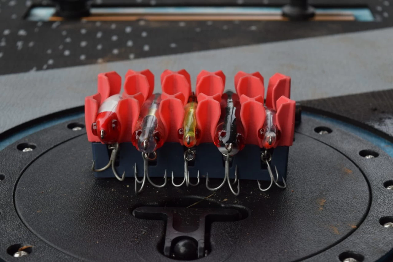 The Hard Bait Launch Pad offers the innovative storage system of the Hard Bait Box in a modular format. Weāve all been on the boat and swapped out a lure only to end up throwing it in the cup holder or even the floor. Weāve all experienced that these two places are not the ideal storage spot for lures or baits. The Hard Bait Launch Pad with the 3M adhesive allows you to adhere the Launch Pad to nearly any hard surface, allowing to to have access to your lures wherever you need them.
