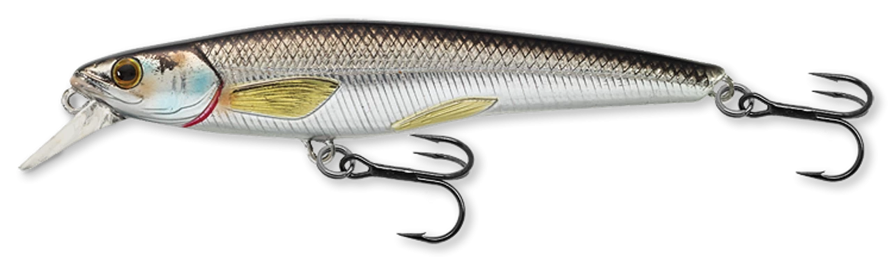 Rainbow Smelt are common forage to Northern game fish such as Walleye, Salmon, Trout, and Smallmouth Bass. Smelt are mostly found in Northern reservoirs and in and around the Great Lakes.The Jerkbait hosts a weight transfer, suspends and has a deep ‘knock’ sound. It is available in shallow and deep dive models and is ideal for casting or trolling.