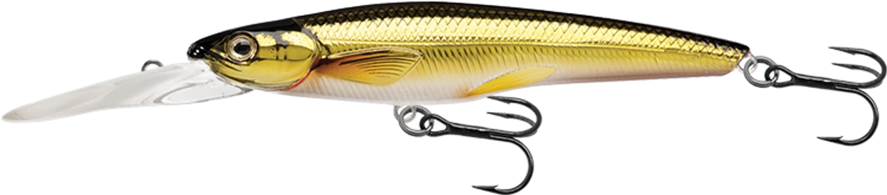 Rainbow Smelt are common forage to Northern game fish such as Walleye, Salmon, Trout, and Smallmouth Bass. Smelt are mostly found in Northern reservoirs and in and around the Great Lakes.The Jerkbait hosts a weight transfer, suspends and has a deep ‘knock’ sound. It is available in shallow and deep dive models and is ideal for casting or trolling.