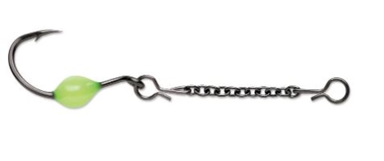 Use the VMC® Octopus Dropper Chain on your favorite spoons or lures for increased action and attraction to turn those sniffers into biters! Glow resin bead stays charged for up to 15 minutes.