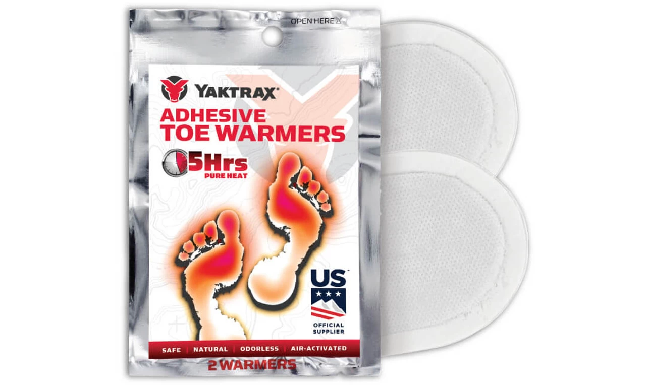 Yaktrax® Adhesive Toe Warmers are a safe, easy, and all-natural solution to painfully cold toes. Once opened and exposed to oxygen in the air, these disposable but environmentally-friendly warmers begin working in just minutes. Apply them directly to the top of your socks to form a radiant barrier of warmth inside your shoes that lasts up to 5 hours. Yaktrax Warmers are the ideal choice for outdoorsman, winter athletes, spectators, and anyone who works or plays outdoors.