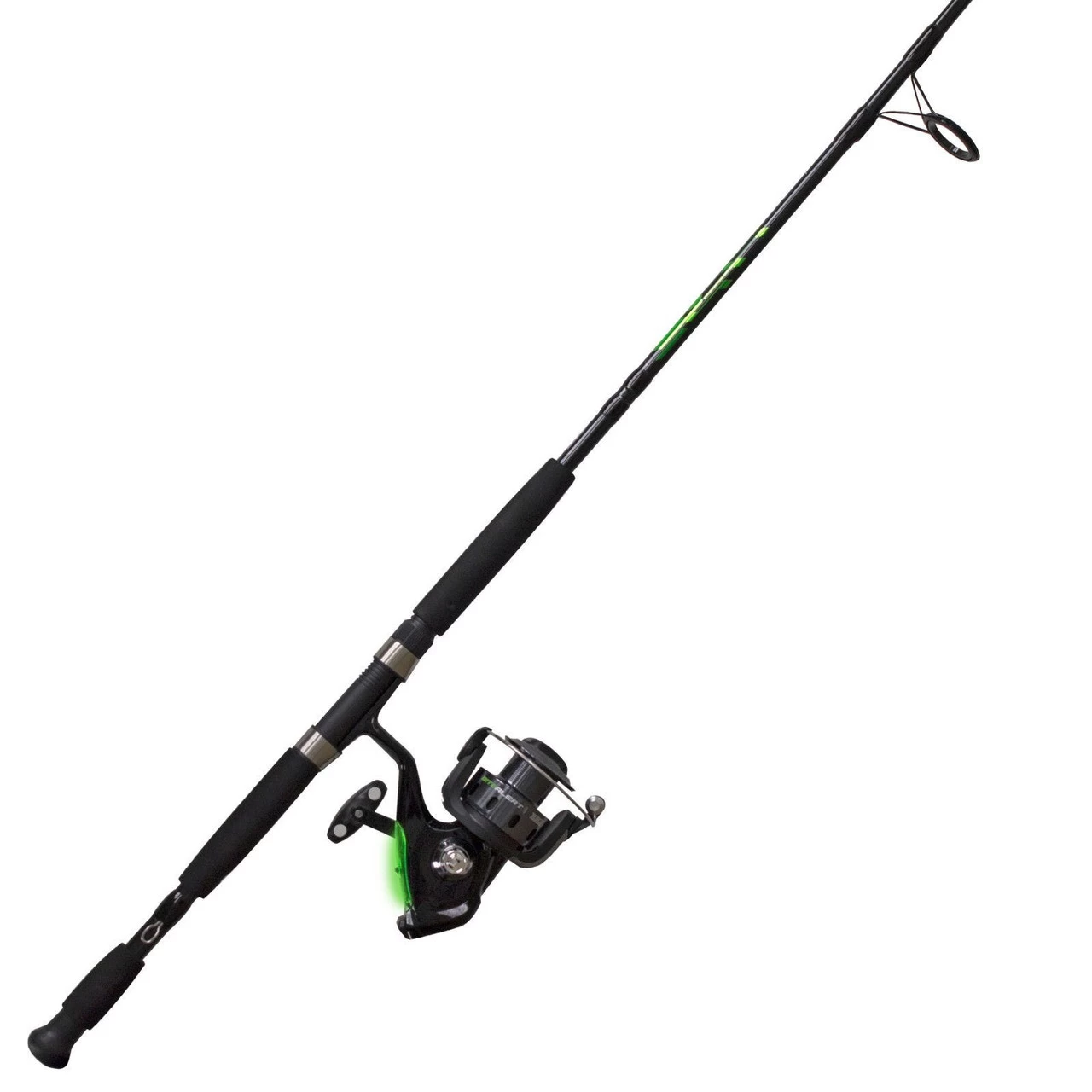 The lights get brighter and the batteries last longer on Zebco’s patented Bite Alert™ system that provides both visual and audio indications when a fish begins to tug the line from the reel spool. Bite Alert™ has always had a loyal following among serious-minded users of hearty size 60 spinning reels, but batteries often fell short on longevity. Now it’s improved because there’s only one battery instead of two, and it lasts much longer. Plus, the light is now green instead of red, making it more visible to anglers that often chase catfish at night. Zebco has also worked hard to improve the performance and ease of use of the strike sensitivity adjustment. This 60sz combo features a 7′ medium-heavy action rod with a high-vis green tip. This electronic fishing pole is pre-spooled with 20lb. line. This Zebco Bite Alert fishing rod requires one CR2032 battery (included)